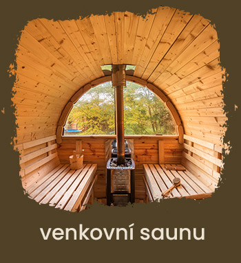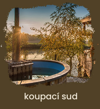 K dispozici je i venkovní koupací sud, venkovní sauna a možnost koupání či rybaření v rybníku.