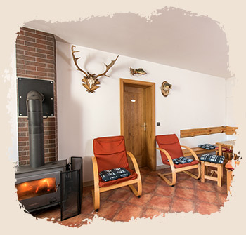 Součástí ubytování je i útulná společenská místnost, jako stvořená pro pohodové posezení s přáteli či rodinou nebo příjemné seznámení s ostatními hosty.