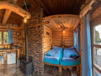 Srub poskytuje útulné zázemí až pro 4 osoby, ideální pro romantický pobyt, rodinnou dovolenou nebo pohodový víkend s přáteli.